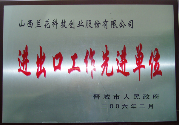 2006年2月,蘭花科創被市政府評為進出口工作先進單位