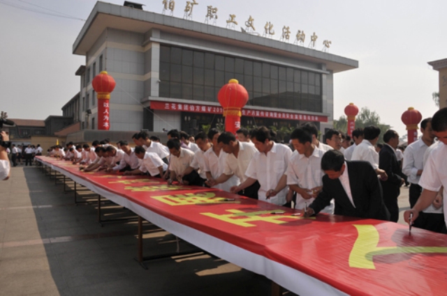 股份公司總經理陳勝利與唐安分公司職工一起參加安全簽名活動