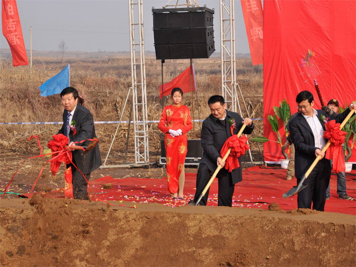 公司董事長郝躍洲、總經理陳勝利等領導出席奠基儀式。副總經理韓建中主持奠基儀式。百盛公司股東、領導班子、總公司各部門負責人和所在地鎮、村負責人及施工、監理代表等參加奠基。