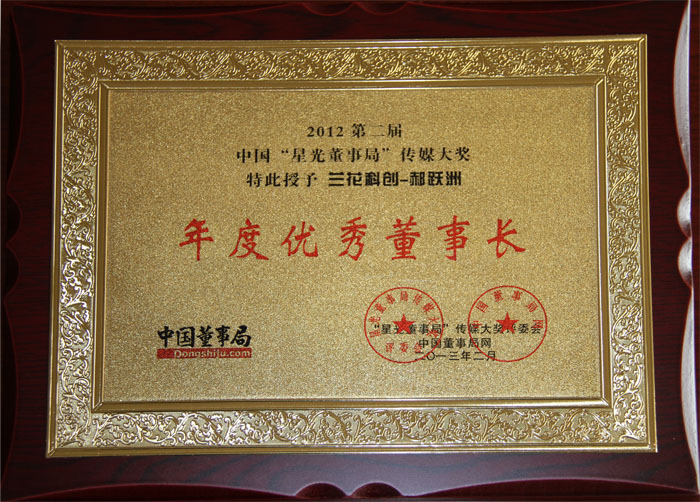 本網訊 日前,2012第二屆中國“星光董事局”傳媒大獎在北京揭曉。蘭花科創董事長郝躍洲再次獲得2012第二屆中國“星光董事局”傳媒大獎年度優秀董事長稱號。
