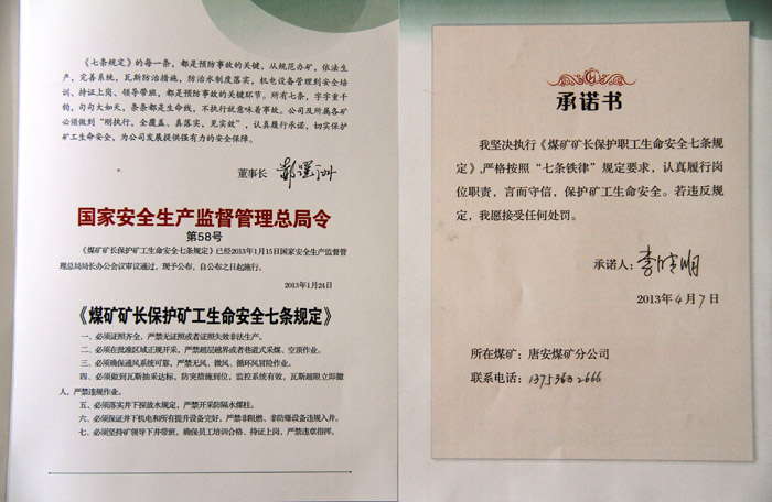 近日,陳勝利總經(jīng)理帶領(lǐng)公司相關(guān)領(lǐng)導(dǎo)和包礦部門負(fù)責(zé)人,逐礦組織開展《七條規(guī)定》現(xiàn)場(chǎng)宣貫會(huì)。組織各礦班組長(zhǎng)以上領(lǐng)導(dǎo)干部觀看了警示教育片,發(fā)放了《煤礦礦長(zhǎng)保護(hù)礦工生命安全七條規(guī)定》學(xué)習(xí)手冊(cè),還組織參加宣貫現(xiàn)場(chǎng)會(huì)的人員現(xiàn)場(chǎng)簽訂承諾書,并進(jìn)行考試。