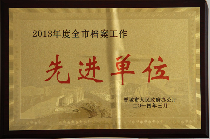 2014年3月,公司榮獲“2013年度全市檔案工作先進單位”