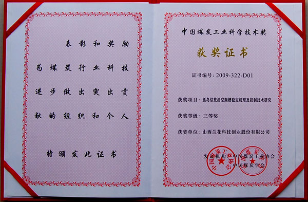 2009年,公司榮獲中國煤炭工業科學技術獎
