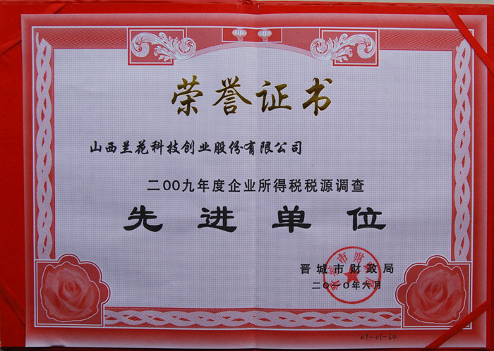 2010年6月,公司榮獲2009年度企業所得稅源稅調查“先進單位”