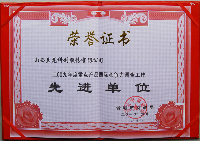 2010年6月,公司榮獲2009年度重點產(chǎn)品國際競爭力調(diào)查工作“先進(jìn)單位”