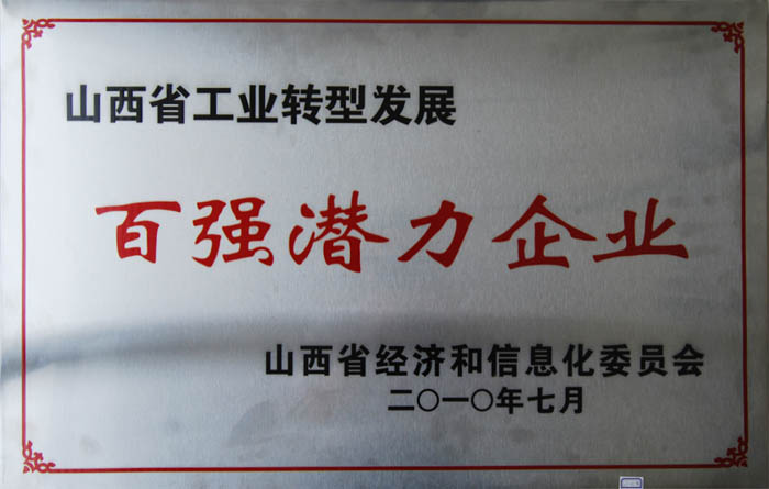 2010年7月,公司榮獲山西省工業轉型發展“百強潛力企業”