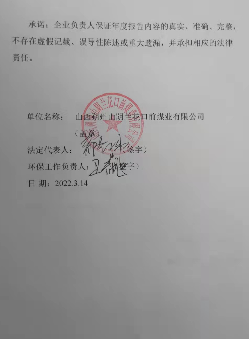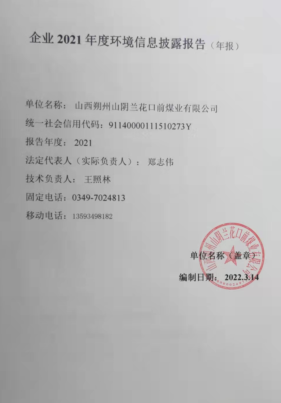 口前煤業(yè)2021年度環(huán)境信息披露報(bào)告
