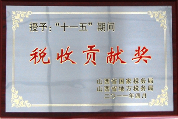 公司榮獲山西省“十一五”期間稅收貢獻獎