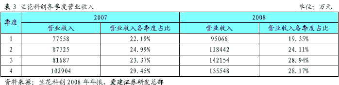 同時,該公司上半年尿素產(chǎn)量增長了17.87%;而銷量增速為30.87%,遠(yuǎn)高于全年的9.8%,說明2008年下半年,氮肥行業(yè)進(jìn)入下行周期對蘭花科創(chuàng)的業(yè)績構(gòu)成了一定程度的影響。