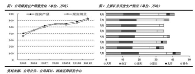 公司煤炭總產(chǎn)銷量變化(單位:萬噸) 主要礦井月度生產(chǎn)情況(單位:萬噸) 資料來源:公司公告、公司網(wǎng)站、西南證券研發(fā)中心