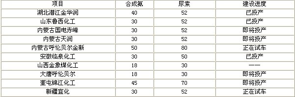 2011下半年-2012年上半年投產尿素項目(單位:萬噸)
