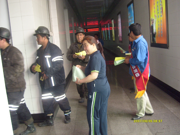 望云分公司礦領(lǐng)導(dǎo)現(xiàn)場(chǎng)發(fā)放環(huán)保宣傳資料