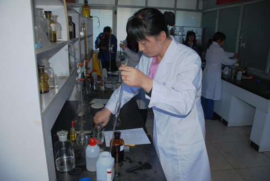 分析工比賽的緊張勁一點也不遜色于前三場比賽,面對眼前的瓶瓶罐罐,天平試劑,她們從容操作,整個分析過程緊張而不失嚴謹,取樣稱量滴定一串的動作協(xié)調(diào)而規(guī)范,分析數(shù)據(jù)準確無誤,在技術(shù)比武這個特殊的平臺上,展現(xiàn)了當(dāng)代女工們身懷絕技、心靈手巧的精神風(fēng)貌。