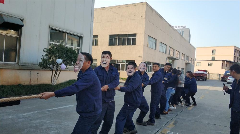 再來蛟龍出海團體項目,6個隊員并排站成1排,每個人的左右腿都和他左右兩個人的右腿和左腿用綁腿繩綁在一起,形成三人四足的樣子。這是一個需要團隊協作才能完成的項目,最終脫模布車間的膜力四射隊取得了冠軍。