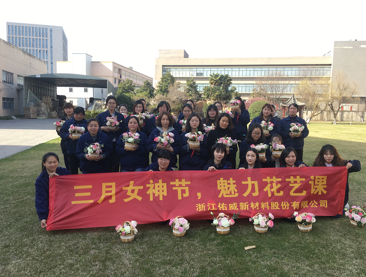3月8日,為豐富女員工的文化生活,體現公司對女員工的關愛,浙江佑威新材料股份有限公司向全體女員工送上最溫馨的節日祝福,并舉辦了女神節插花活動,在美麗芬芳的鮮花陪伴下,大家度過了美好的午后時光。